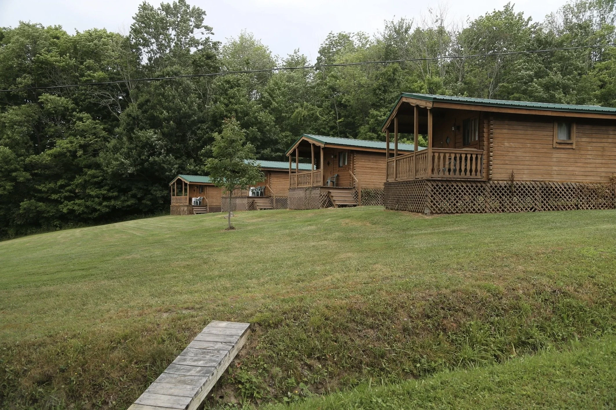 Four cabins are located uphill of the main grounds. Each offers four bunk beds and a full bed, along with a bathroom.